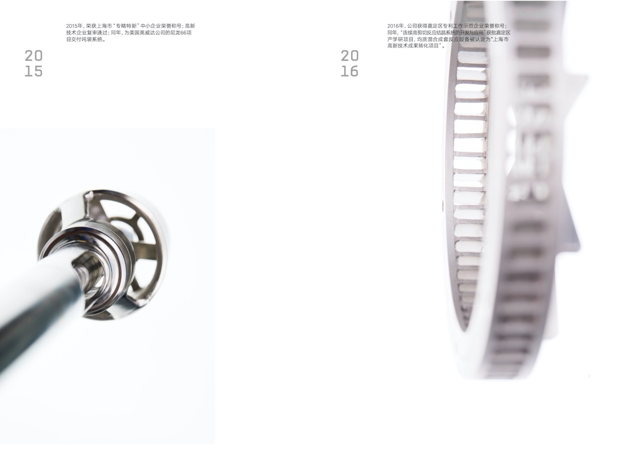 2016In 2016, the company won the honorary title of Jiading District Patent Work Demonstration Enterprise. In the same year, „Development and Application of Continuous High-Shear Reaction Crystallization System“ was approved as an industry-university-research project in Jiading District. Shanghai High-tech Achievement Transformation Project. „