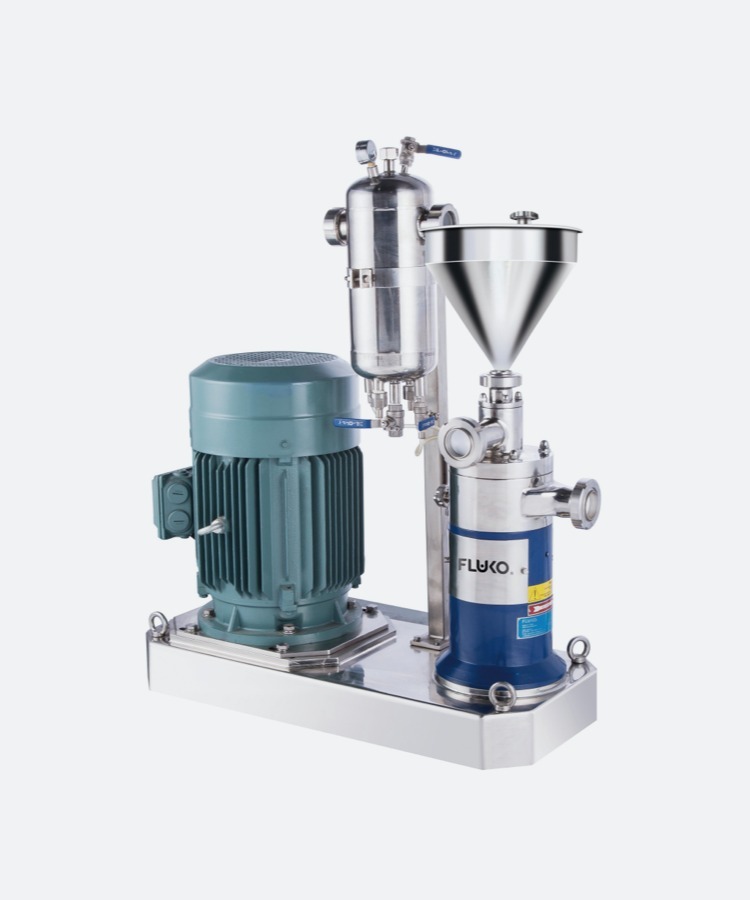 FDC1 is a single stage inline dispersing emulsifier, with hygienic design and meticulously polished component surfaces with a single stage stator and rotor in the working chamber. Materials are sucked into the working chamber axially, subjected to high shear dispersing, emulsifying and homogenizing, and then ejected radially. Suitable for hygienic conditions, such as pharmaceutical production, cosmetics and food. Complies with CIP cleaning requirements and customizable according to GMP regulations.